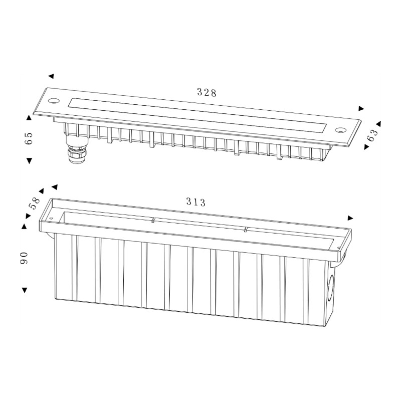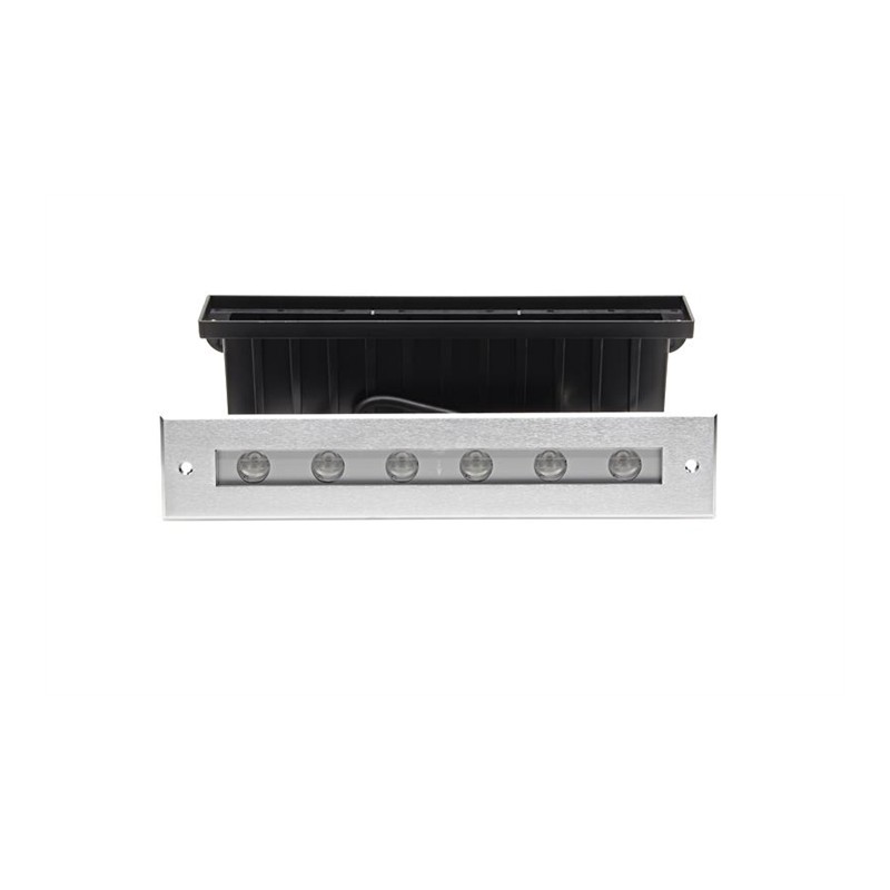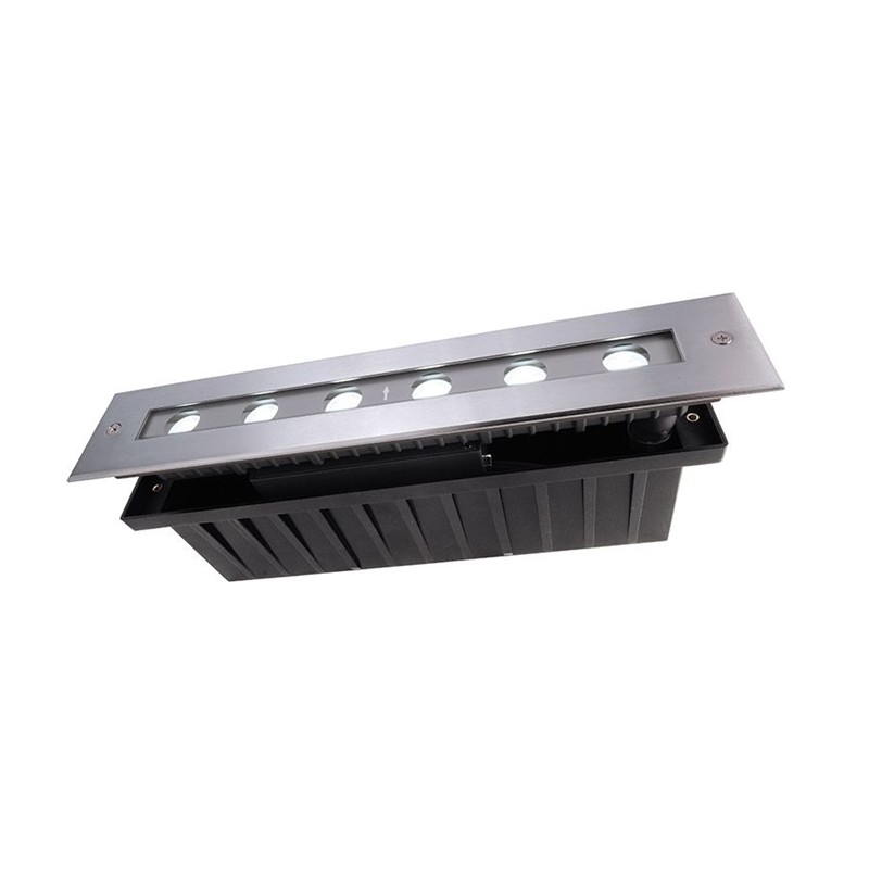 Encastré de sol rectangulaire en acier inoxydable, couleur argent avec pot d’encastrement plastique inclus. Lentille asymétrique avec angle de 45° / 35°, puissance de 10 Watts. Couleur de la LED au choix : en blanc chaud 3000°Kelvins ou blanc froid 6000°Kelvins. Avec une capacité de charge de 3000 kg. Matériel de qualité pro.